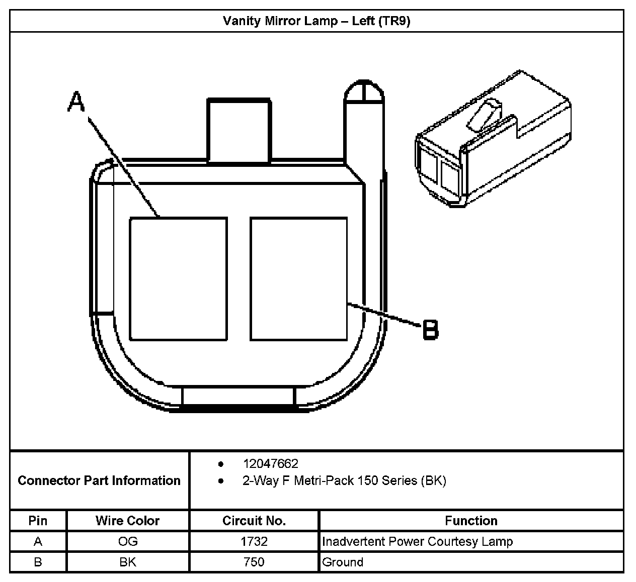 Vanity Mirror Lamp - Left (With RPO Code TR9):