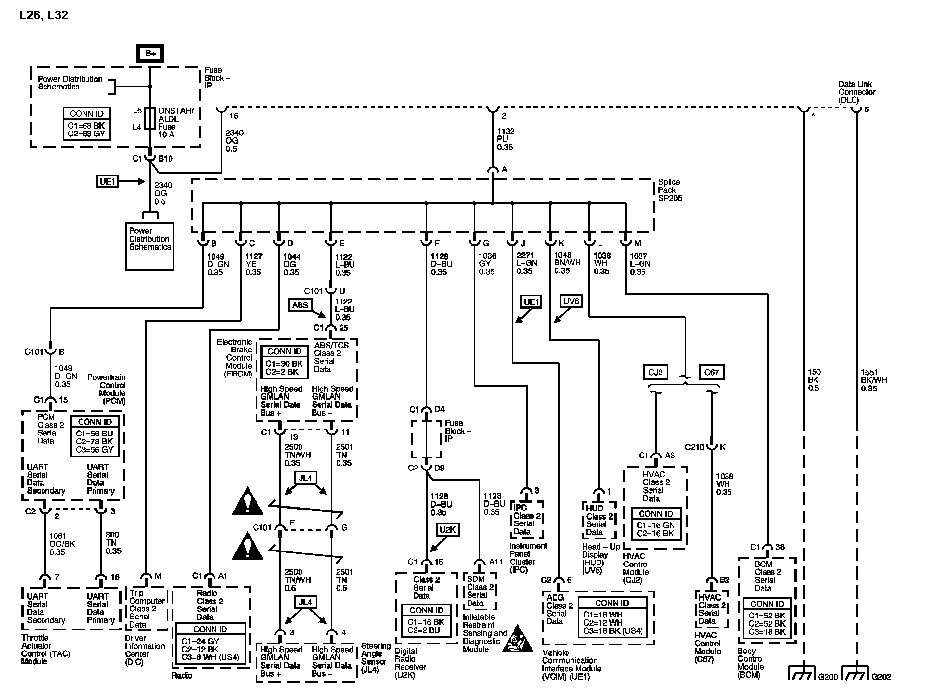The locations for the Connectors, Grounds, Splices, and Grommets shown within these diagrams can be found via their numbers at Vehicle Locations.