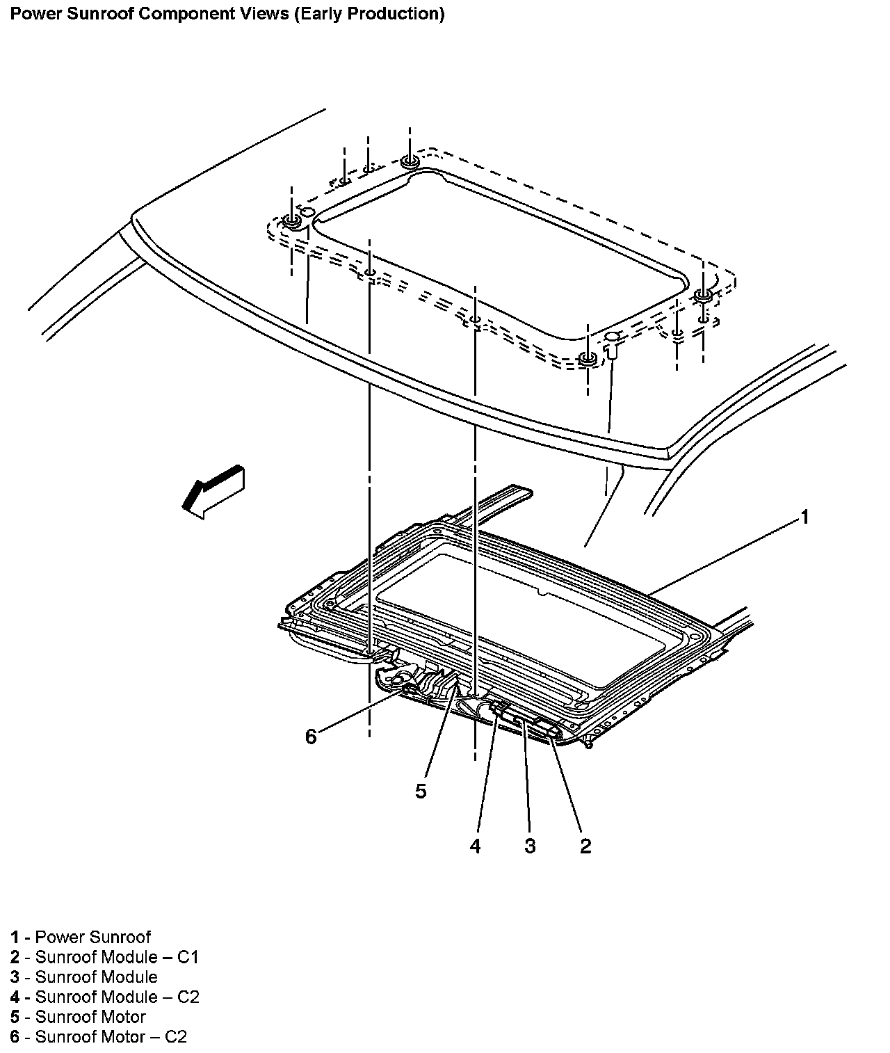 Power Sunroof Component Views (Early Production):
