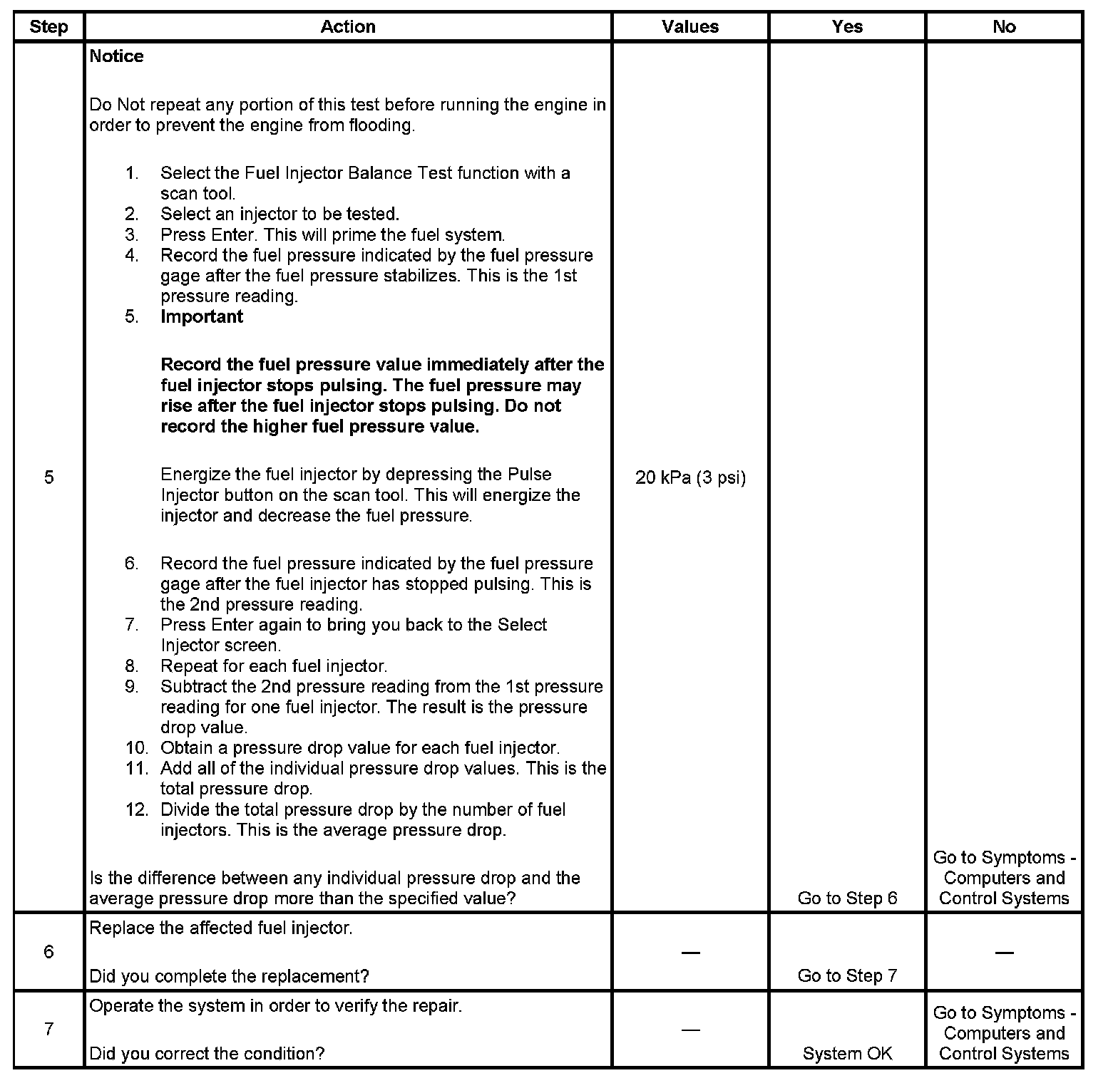 The scan tool is first used to energize the fuel pump. The scan tool is then used to pulse each injector for a precise amount of time, allowing a measured amount of fuel into the manifold. This causes a drop in system fuel pressure that can be recorded and used to compare the flow through each injector.
