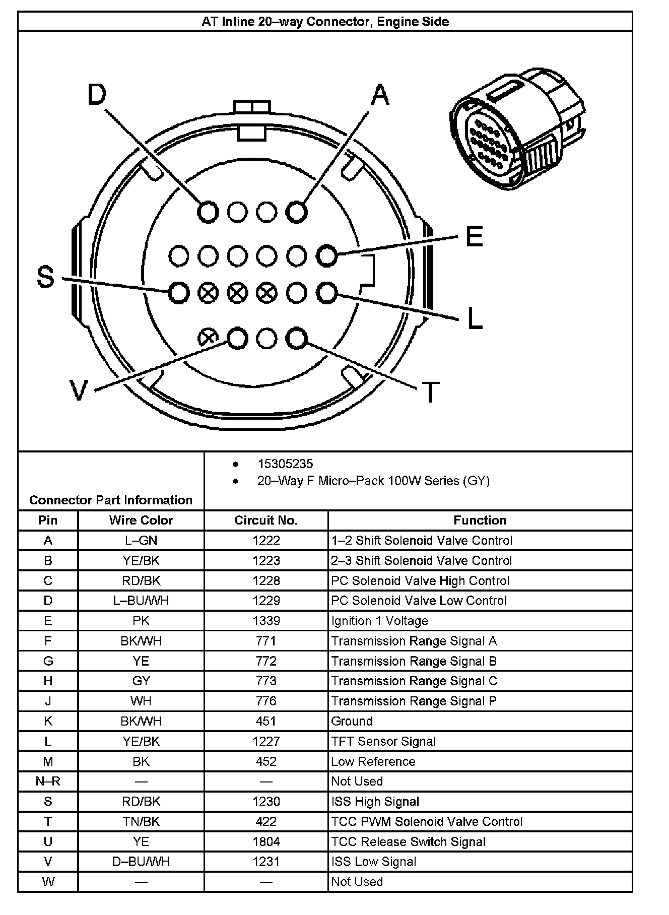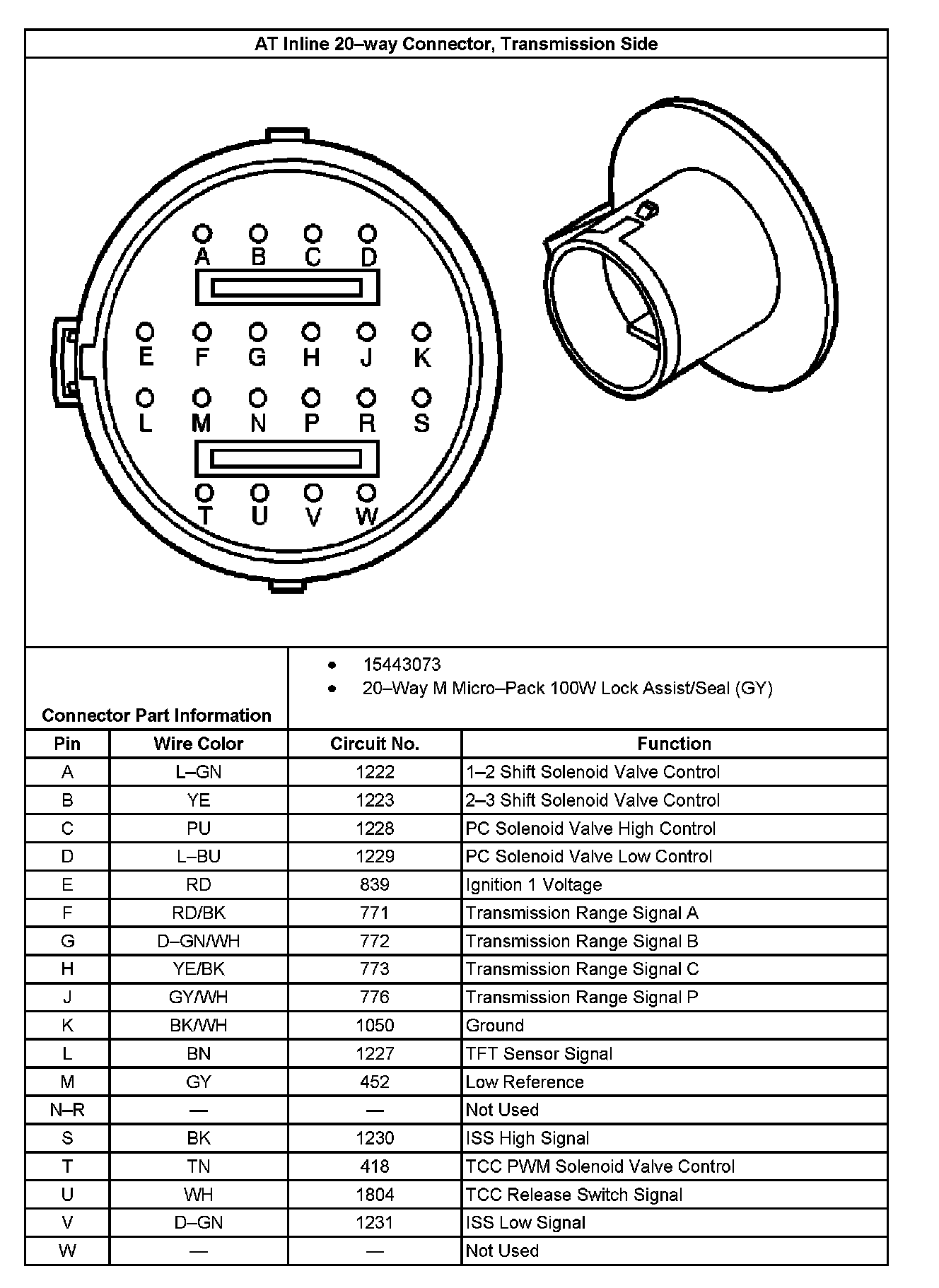 AT Inline 20-way Connector, Transmission Side:
