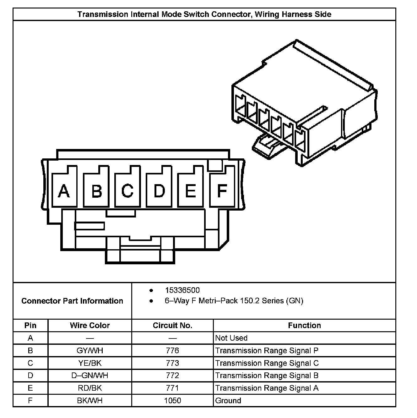Transmission Internal Mode Switch Connector, Wiring Harness Side: