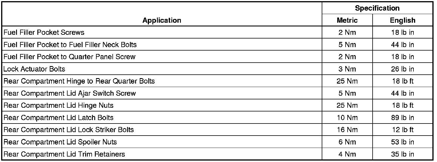 Fastener Tightening Specifications