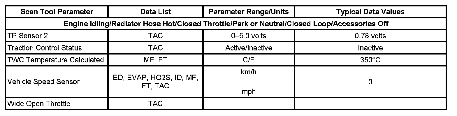 Only the parameters listed below are referenced in this Service Data for use in diagnosis. If all values are within the typical range described below, refer to Symptoms - Computers and Control Systems for diagnosis. Symptom Related Diagnostic Procedures
