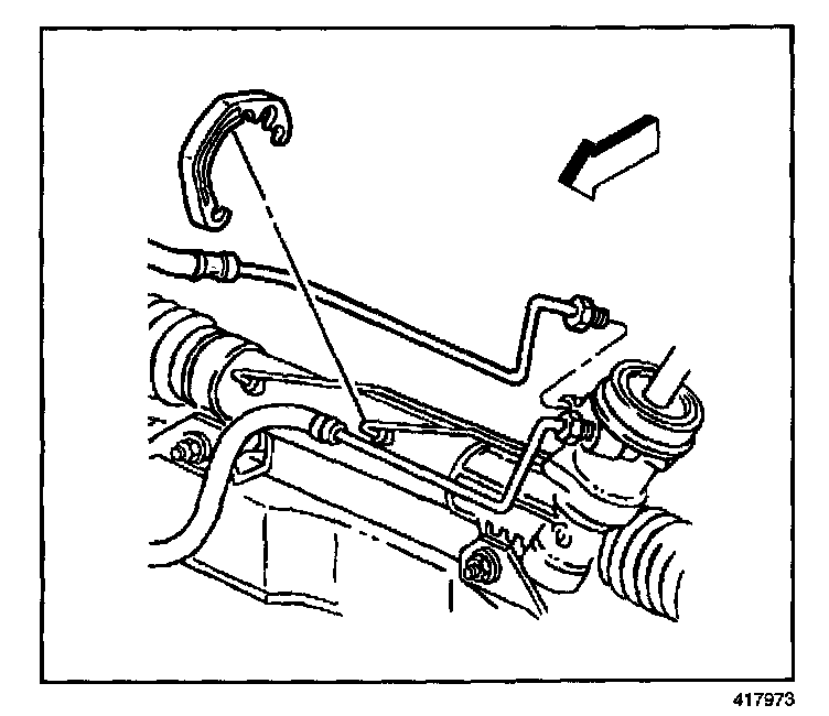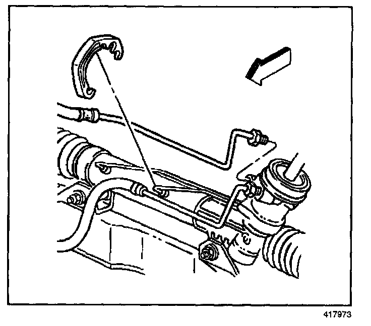 10. Install the power steering gear hose clip.