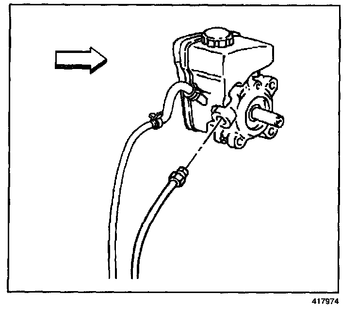 14. Disconnect the power steering pressure hose from the pump.