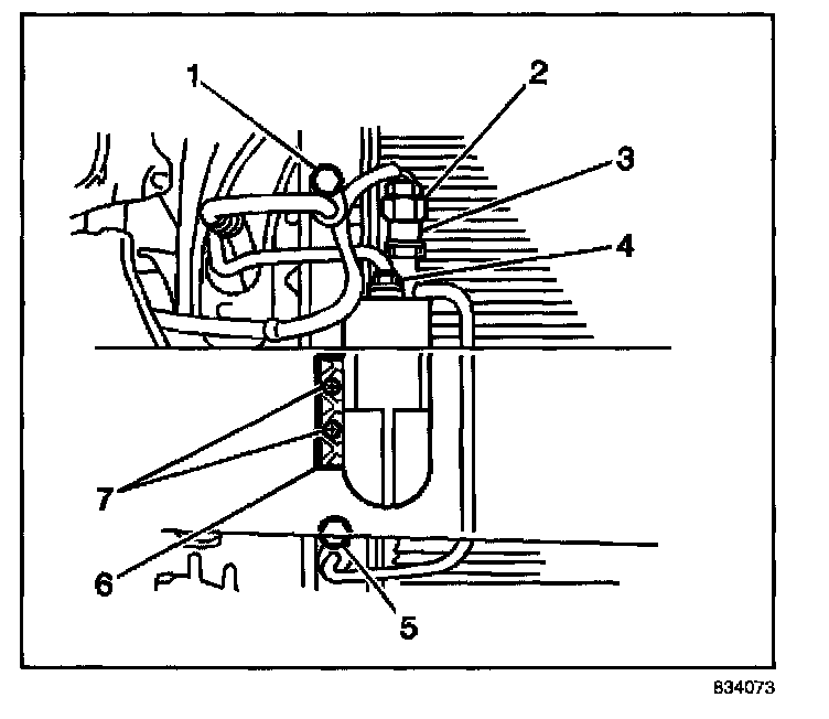 2. Install new O-rings lubricated with mineral base 525 viscosity refrigerant oil.