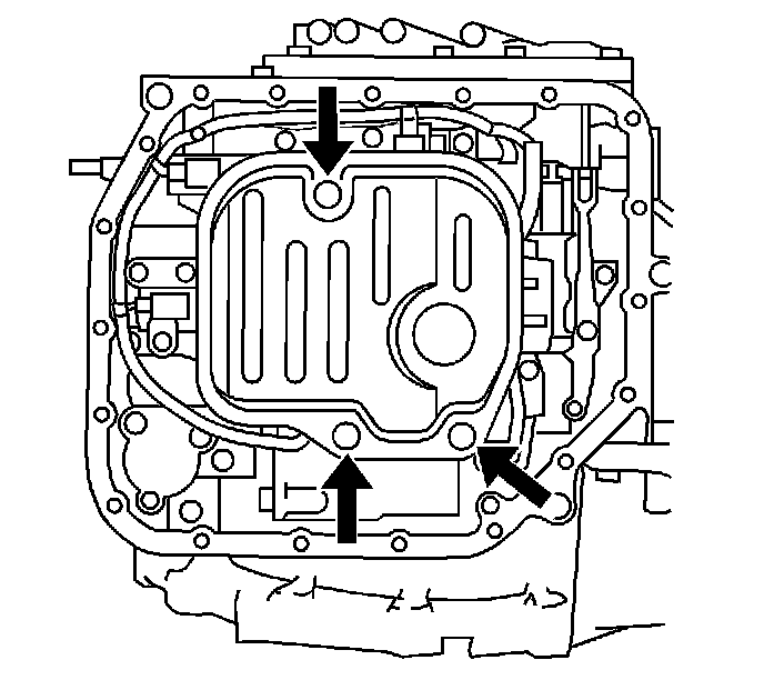 3. Install the fluid filter screen to the valve body assembly. Secure the screen with 3 bolts.