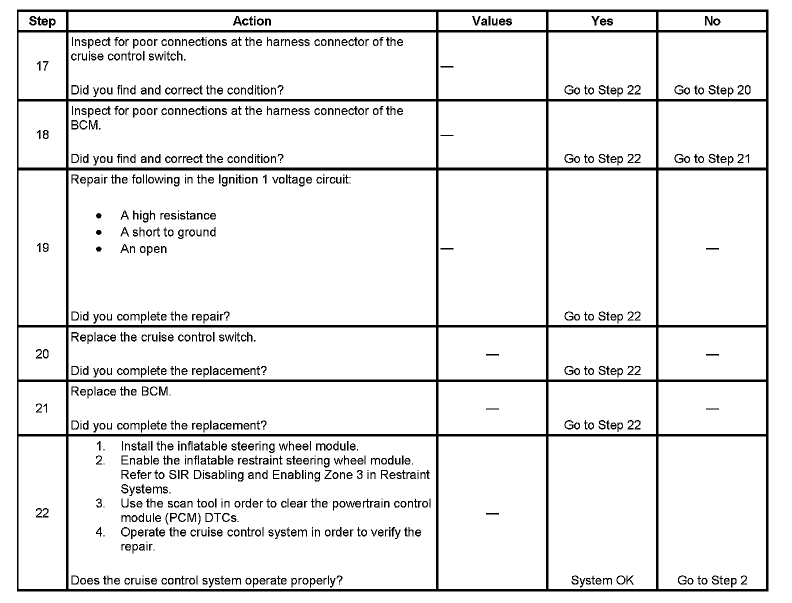 Disable the inflatable restraint steering wheel module when performing this diagnostic table. Refer to SIR Disabling and Enabling Zone 3 in Restraint Systems.