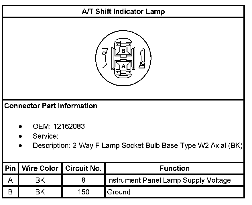 Transmission Shift Position Indicator Lamp