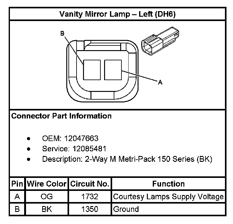 Vanity Mirror Lamp - Left (With RPO Code DH6):