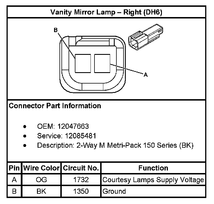 Vanity Mirror Lamp - Right (With RPO Code DH6):