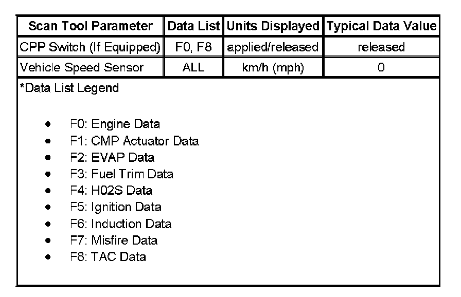 Only the parameters listed below are used in this information for diagnosing. If a scan tool displays other parameters, the values are not recommended by General Motors for use in diagnosis.