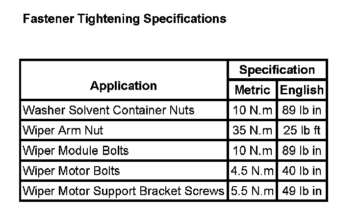 Wiper and Washer Systems: Specifications