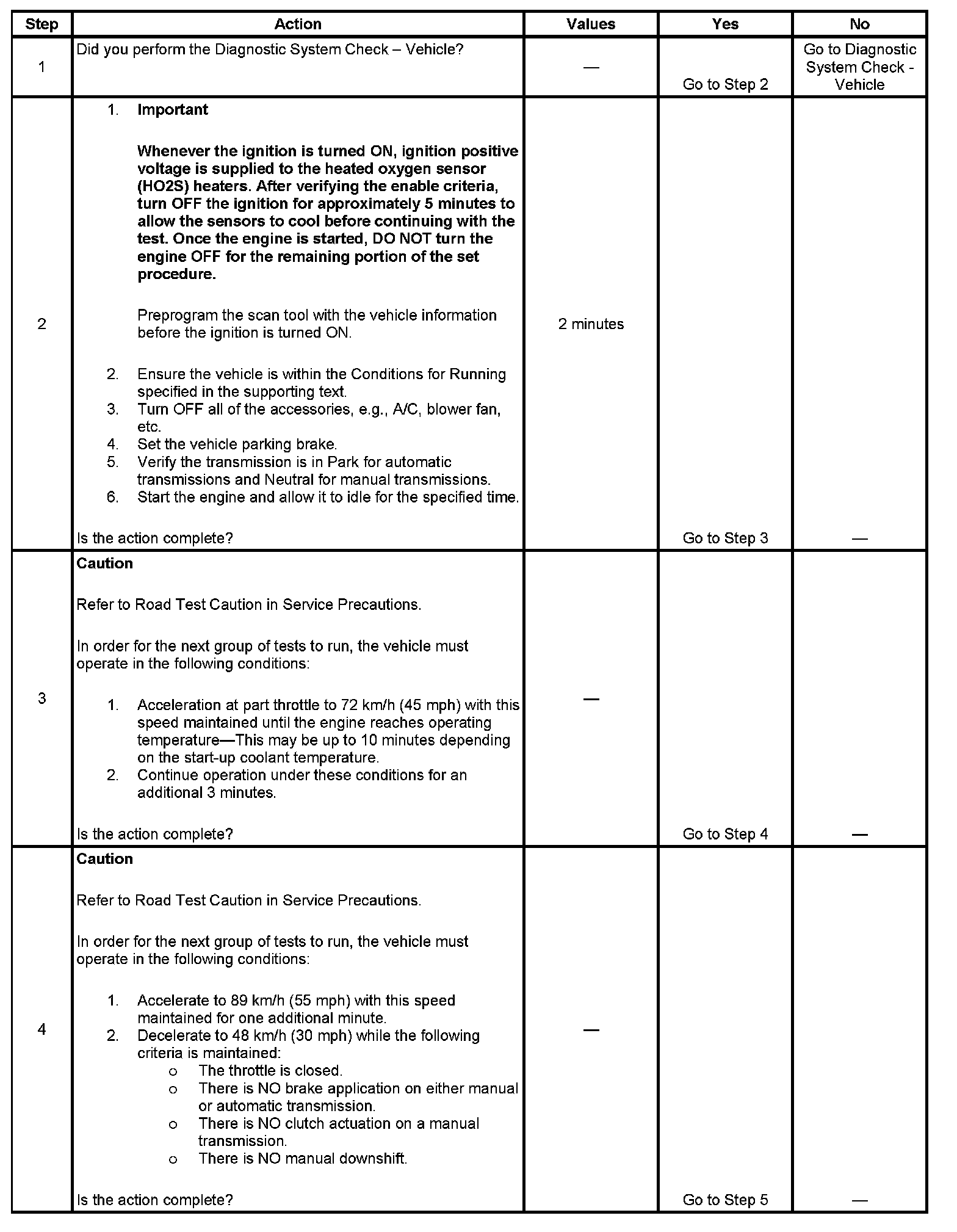 3. This step is to run the EVAP, and the Oxygen Sensor Tests. The EVAP Test begins once the engine coolant reaches a calibrated temperature. The AIR Test, if equipped, begins shortly after Closed Loop and the indicated speed is achieved. The Oxygen Sensor Tests begin once the engine is at operating temperature, in Closed Loop Fuel Control, and a calibrated amount of time has elapsed.