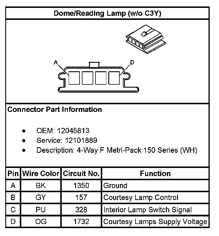 Dome/Reading Lamp (Without RPO Code C3Y):