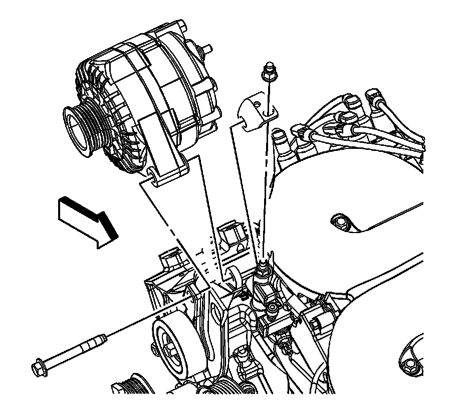 7. Remove the generator lower bolt and stud.