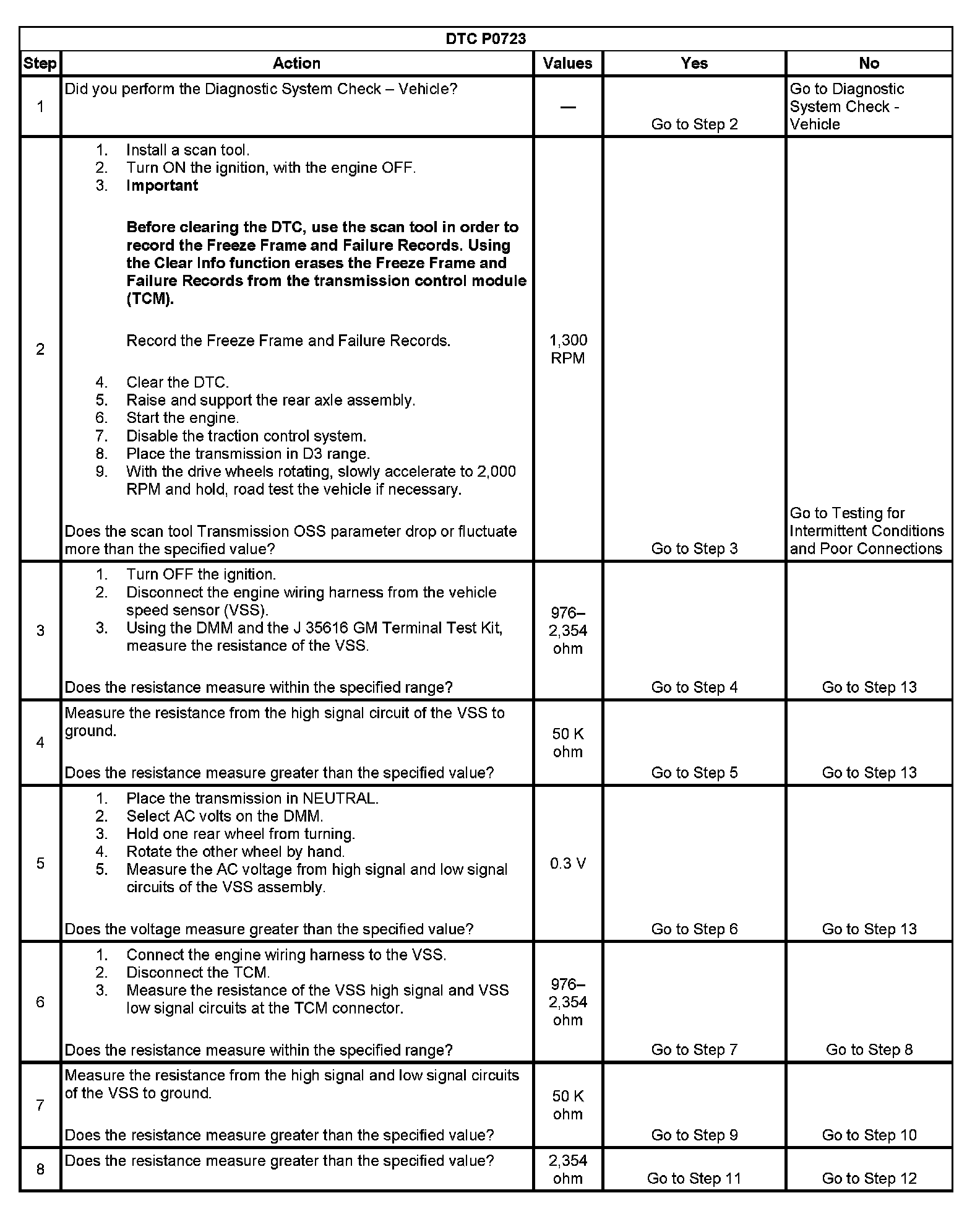 If the TCM detects an unrealistic drop in output shaft speed, DTC P0723 sets. DTC P0723 is a type B DTC.