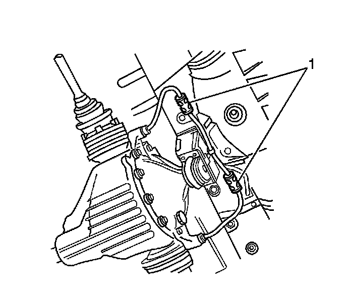 8. Remove the ABS sensor lead connectors from the underbody retaining clips (1).