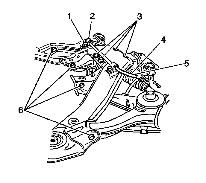 2. Assemble the rear control arms to the rear suspension support brackets and install the attaching bolts and new self locking nuts (6).