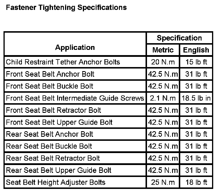 Fastener Tightening Specifications: