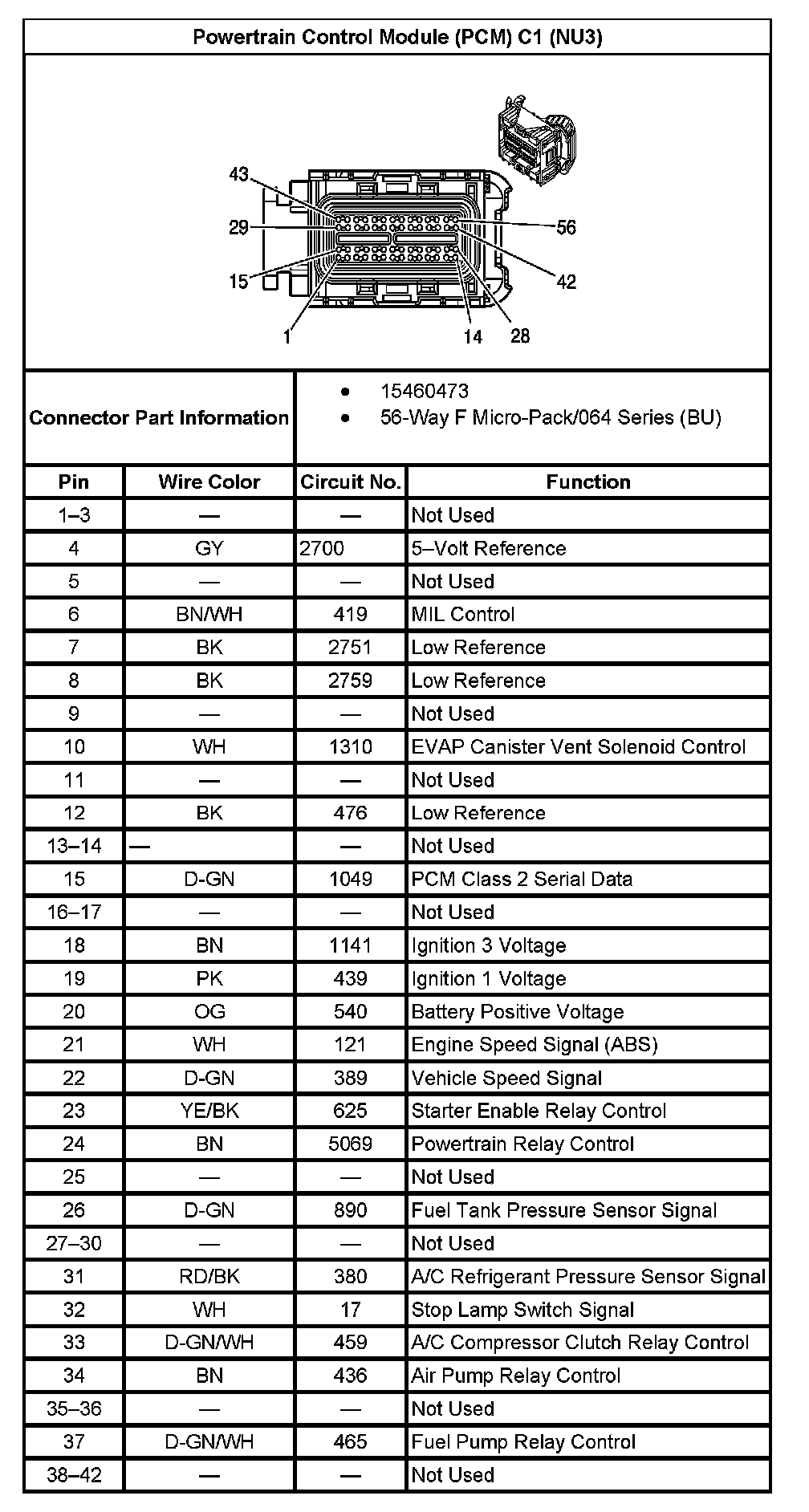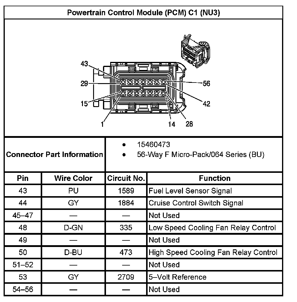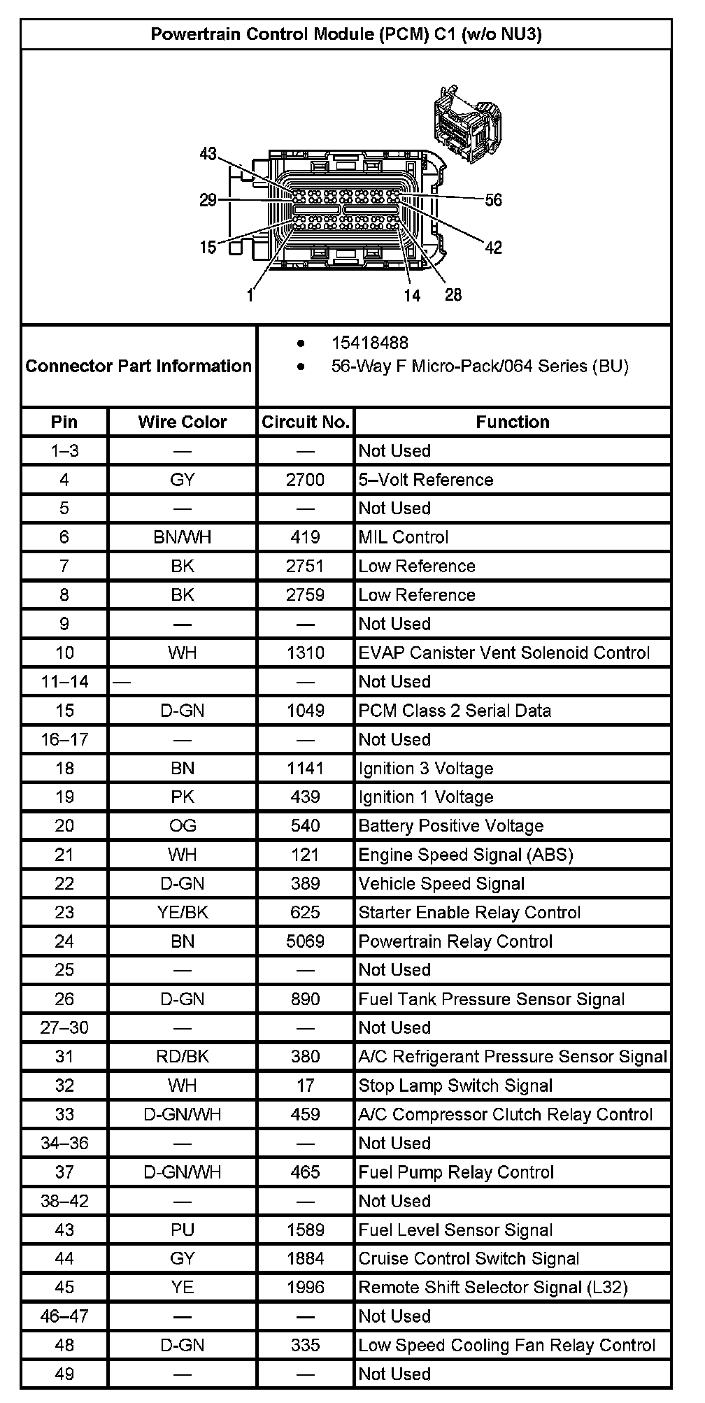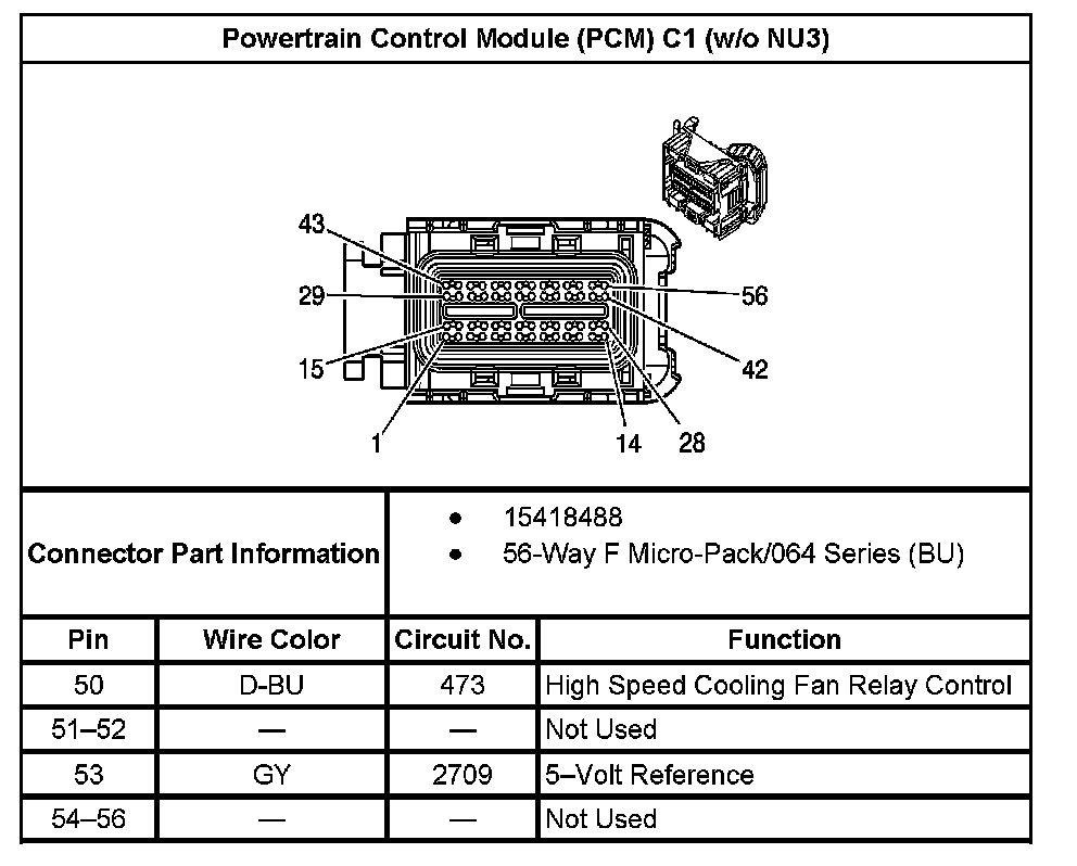 Powertrain Control Module (PCM) C1 (Without RPO Code NU3) (Part 1):
