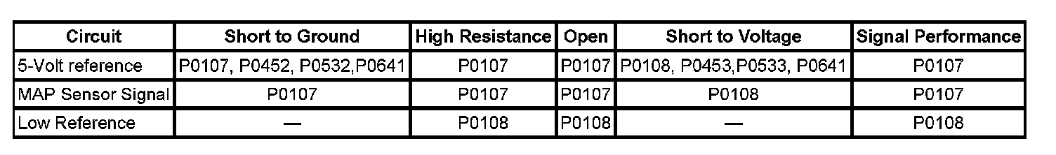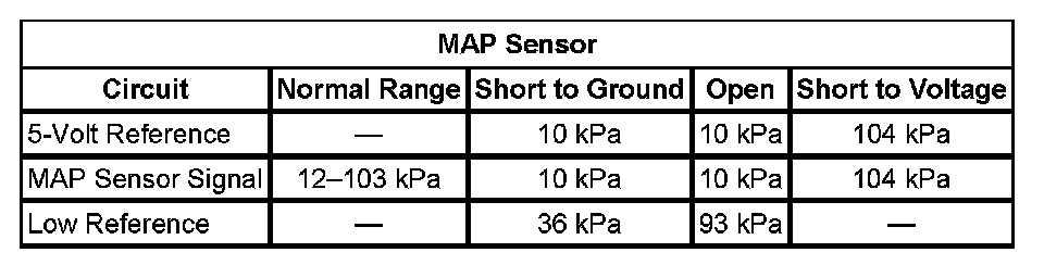 The manifold absolute pressure (MAP) sensor responds to pressure changes in the intake manifold. The pressure changes occur based on the engine load. The MAP sensor has the following circuits: