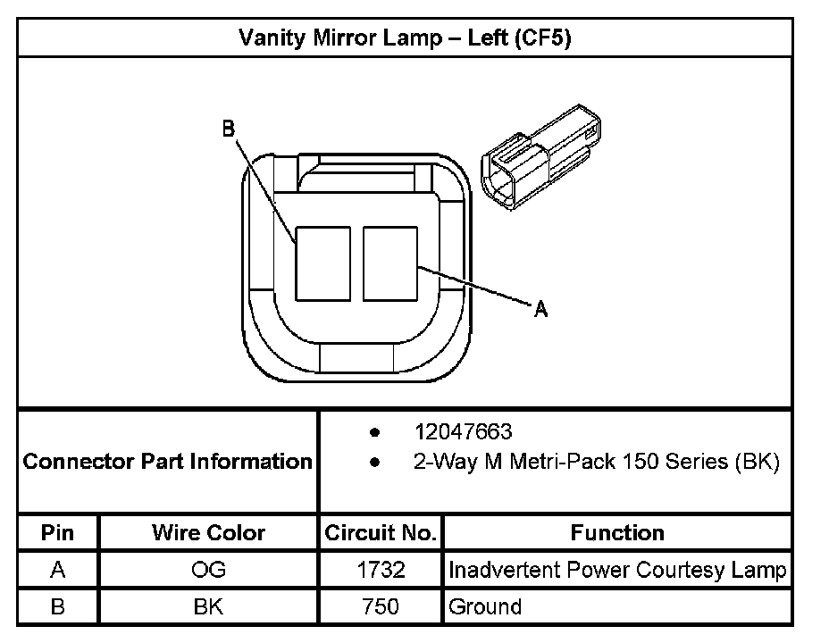 Vanity Mirror Lamp - Left (With RPO Code CF5):