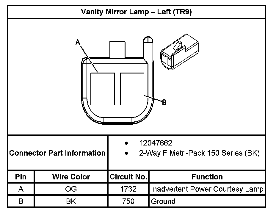 Vanity Mirror Lamp - Left (With RPO Code TR9):