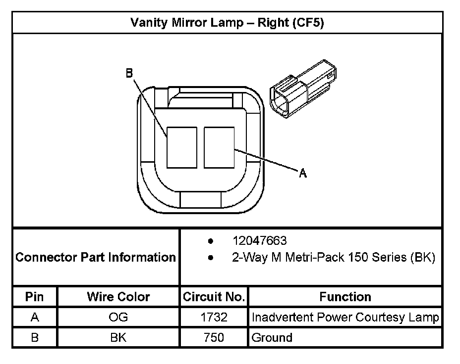 Vanity Mirror Lamp - Right (With RPO Code CF5):