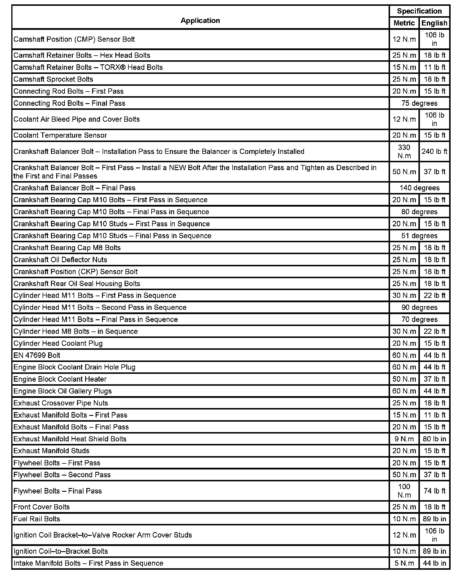 Fastener Tightening Specifications: