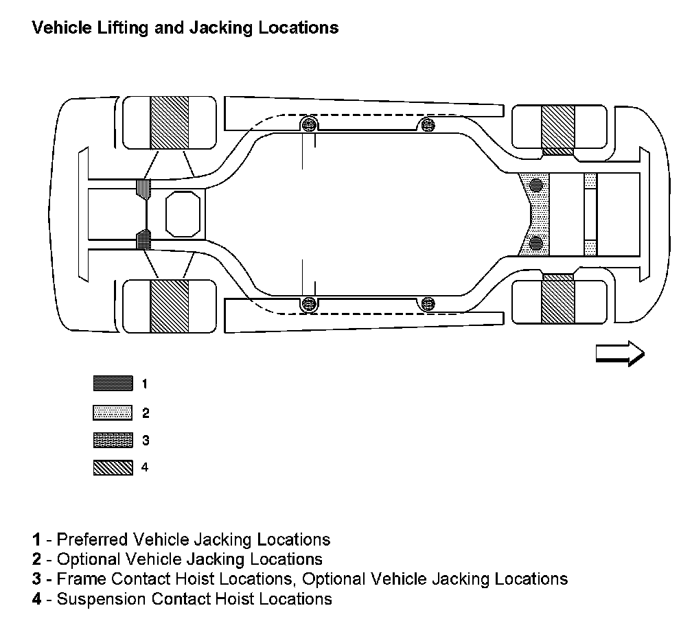 If you use any other lifting methods than those called out, take special care not to damage the fuel tanks, the exhaust system or the underbody.