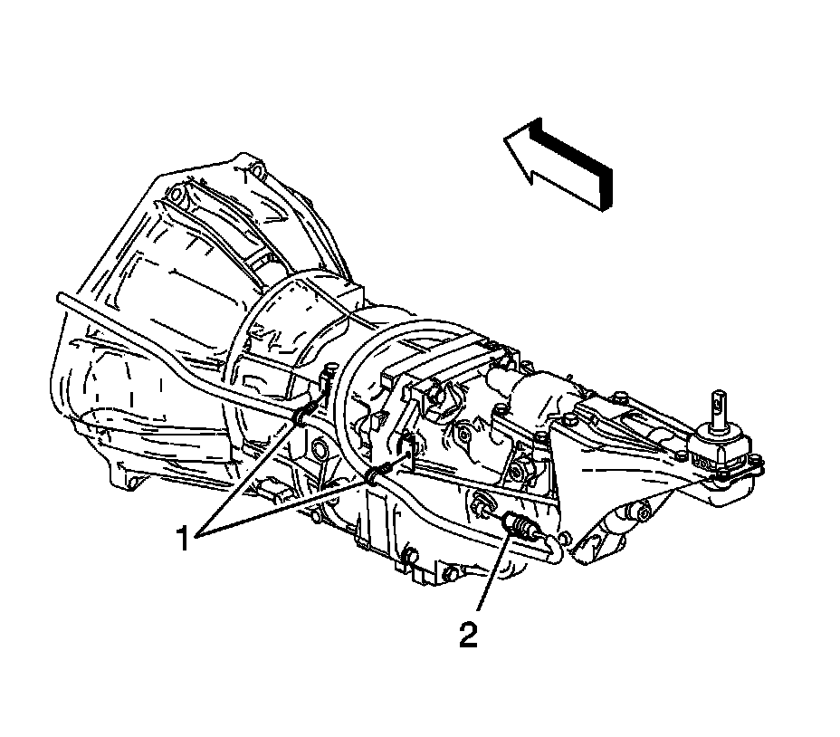 3. Disconnect the vehicle speed sensor (VSS) electrical connector (2).