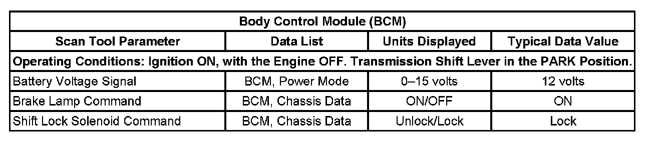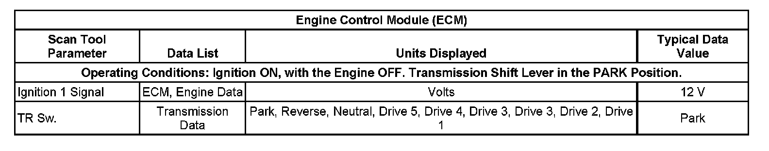 Scan Tool Data List 1: