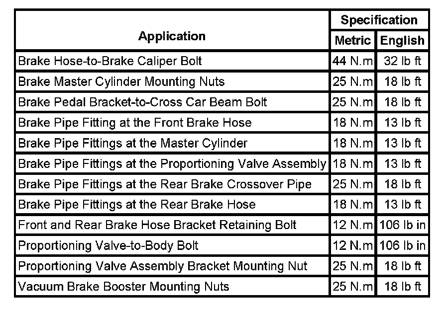 Brake System Specifications: