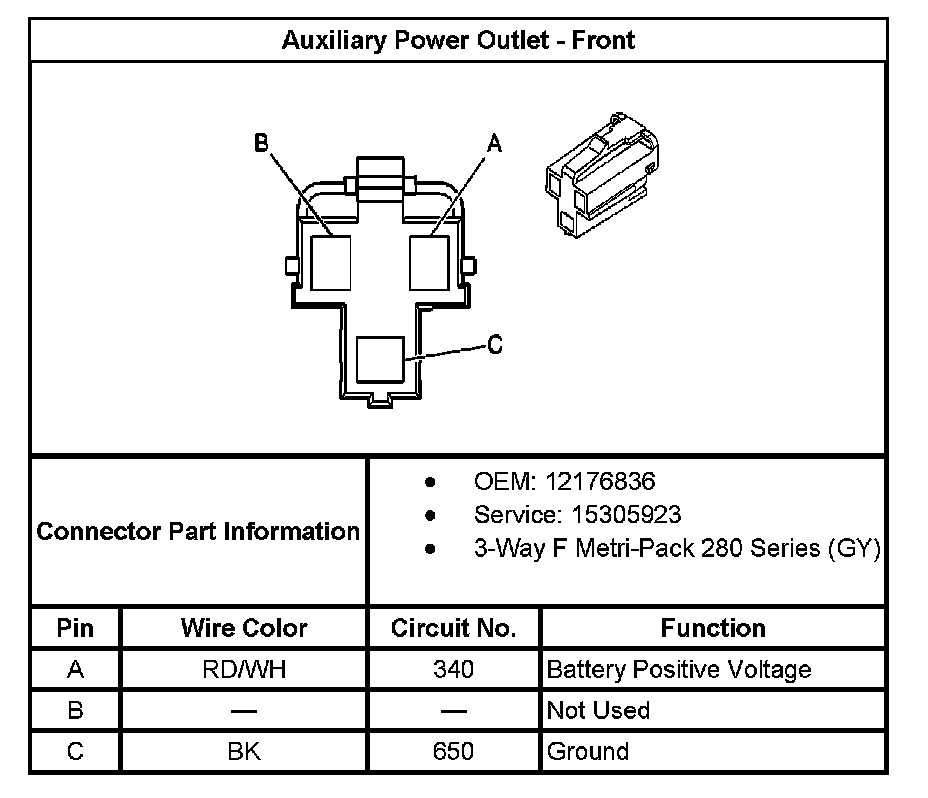 Auxiliary Power Outlet - Front: