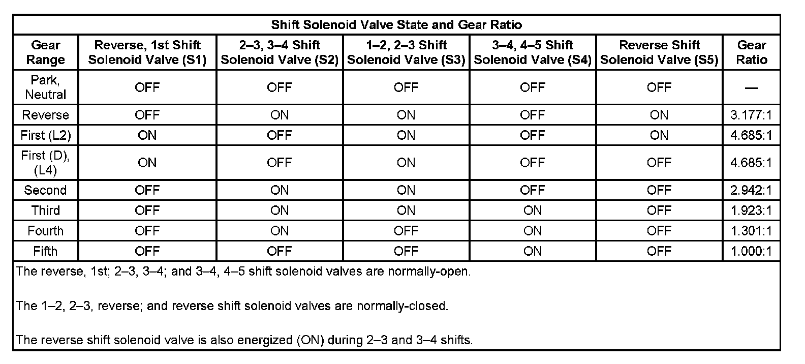 Shift Solenoid Valve State and Gear Ratio: