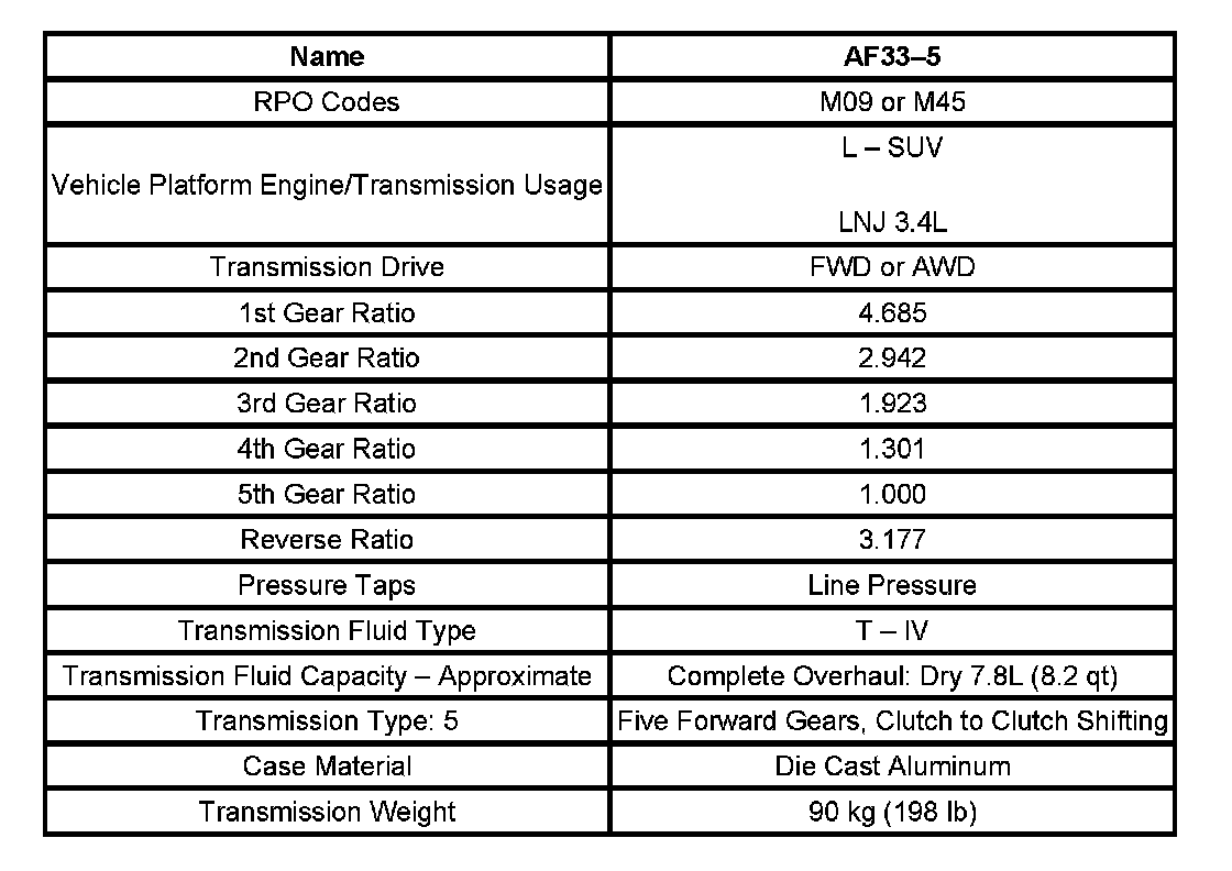 Transmission General Specifications: