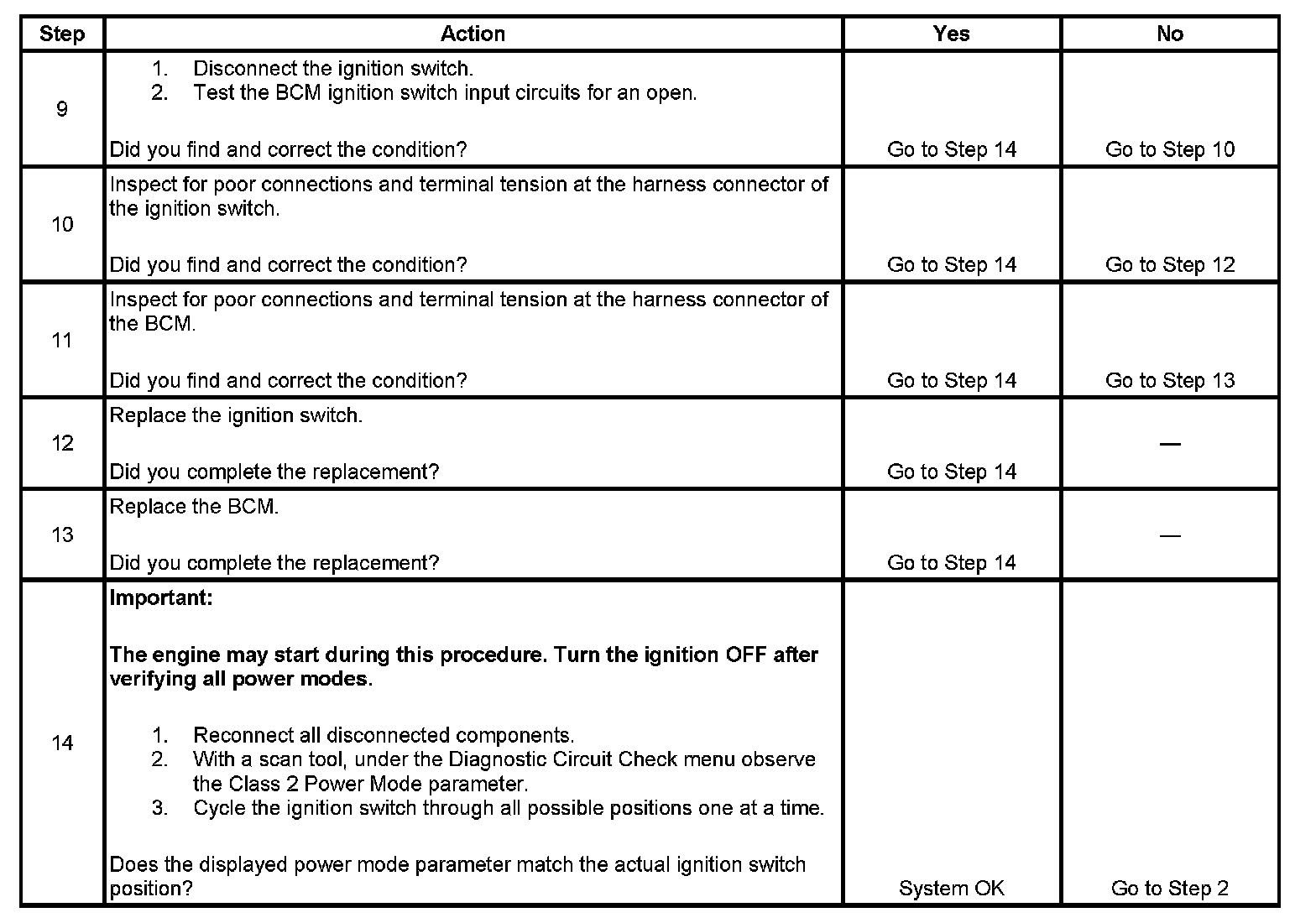 8. If any ignition switch parameters that should be inactive in the present ignition switch position are active, 2 ignition switch signal circuits may be shorted together.