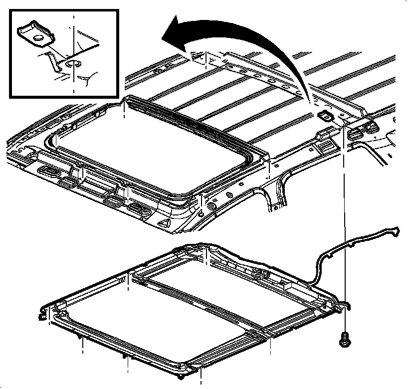 8. Adjust the sunroof window. Refer to Sunroof Window Height and Opening Fit Adjustment.