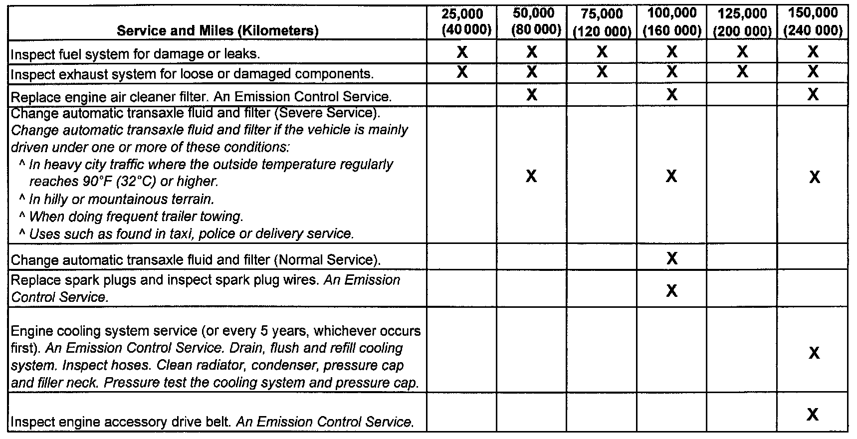 service (I or II) after the indicated miles (kilometers) shown for each item.