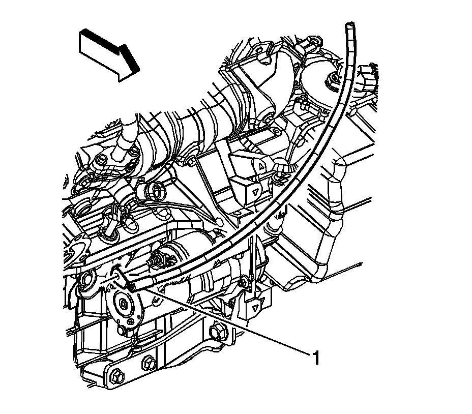 8. Disconnect the positive battery cable (1) from the starter solenoid.