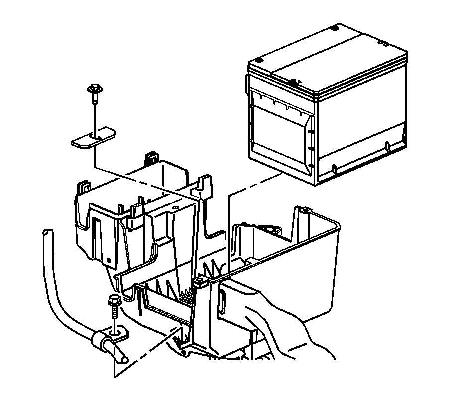 2. Remove the air conditioning (A/C) evaporator outlet hose bolt from the battery box.