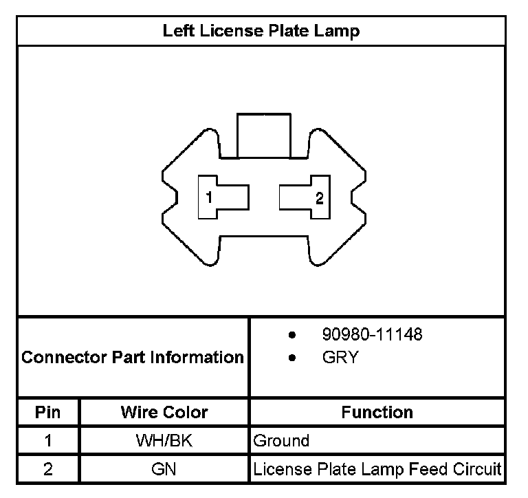 Left License Plate Lamp: