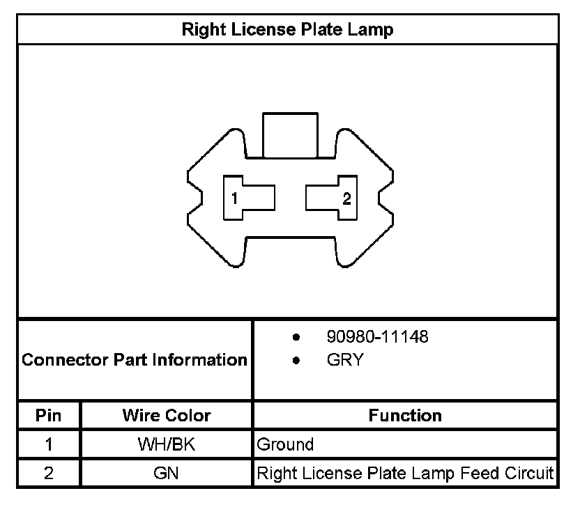 Right License Plate Lamp: