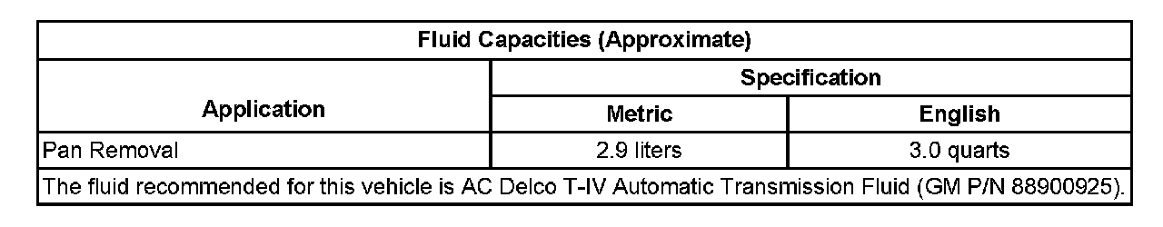 Fluid Capacity Specifications: