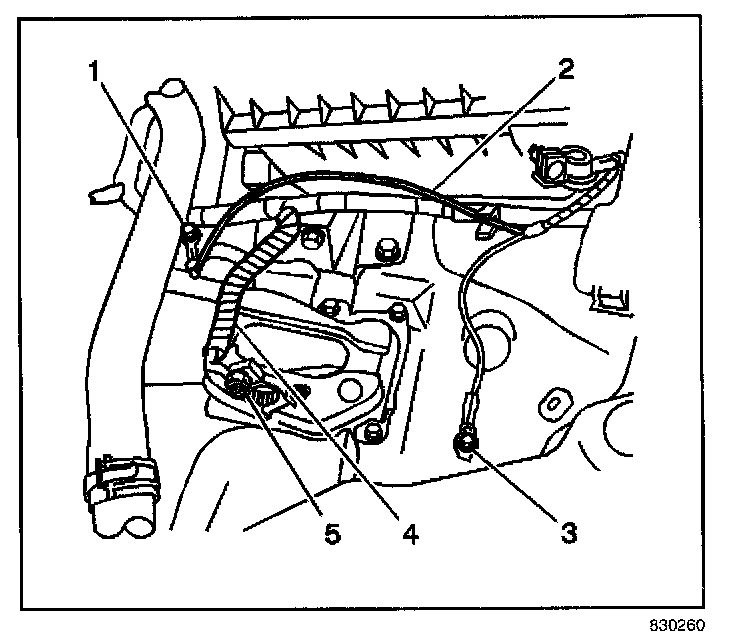 1. Position the positive (+) battery cable (4) into the vehicle.
