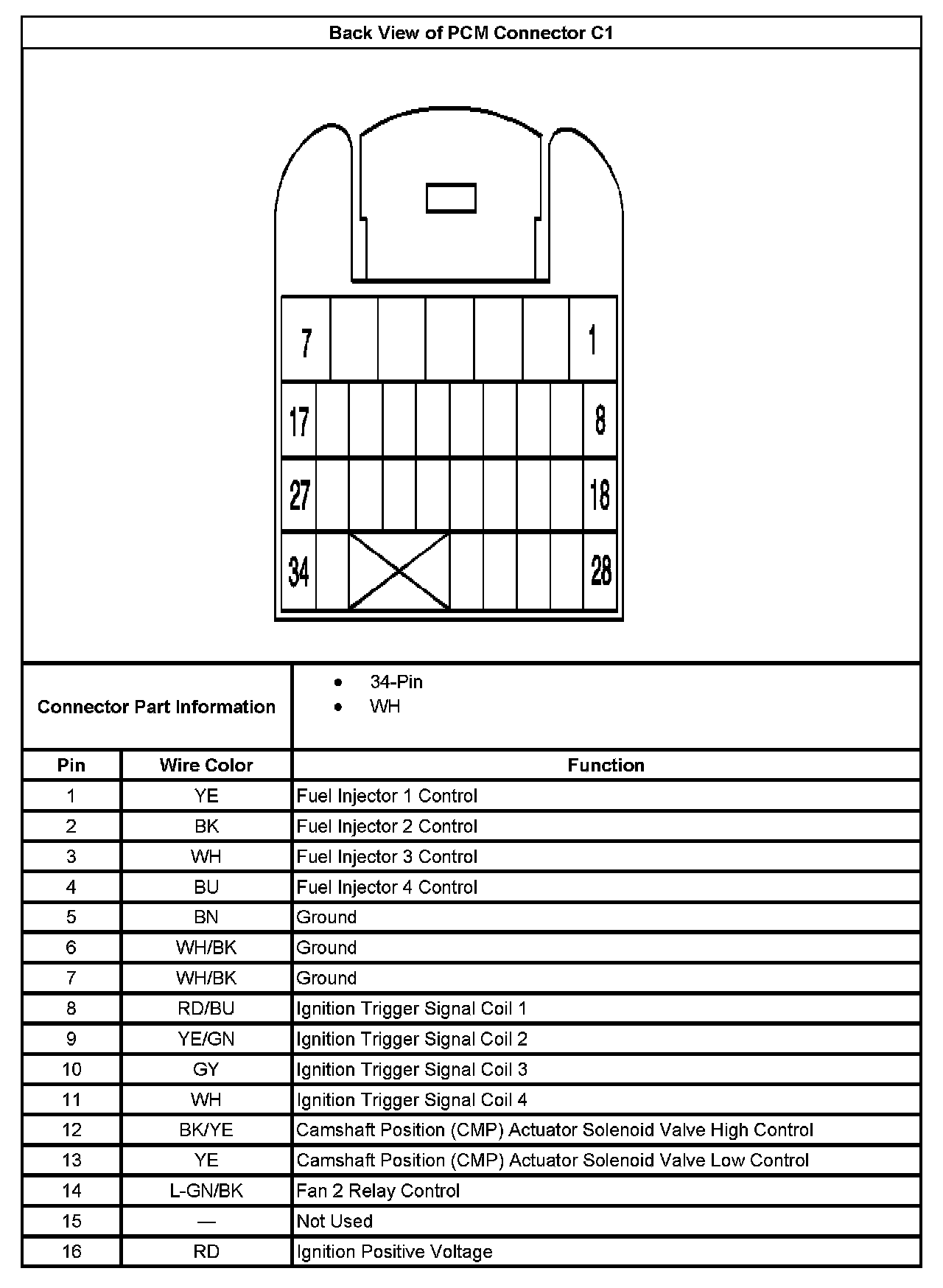Back View Of PCM Connector C1 (Part 2):