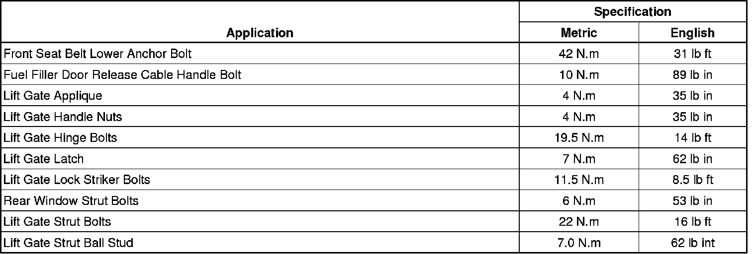Fastener Tightening Specifications