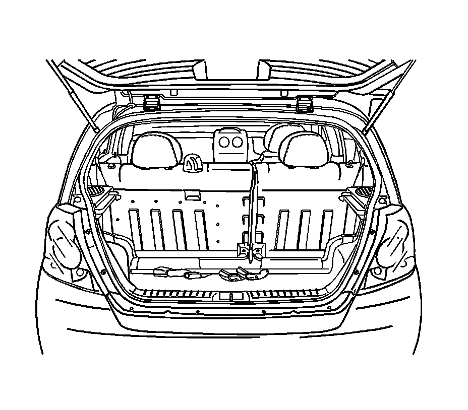 2. Remove the luggage compartment rear quarter and rear trim panels. Refer to Trim Panel Replacement - Rear Quarter (Removal and Replacement) in Interior Trim.